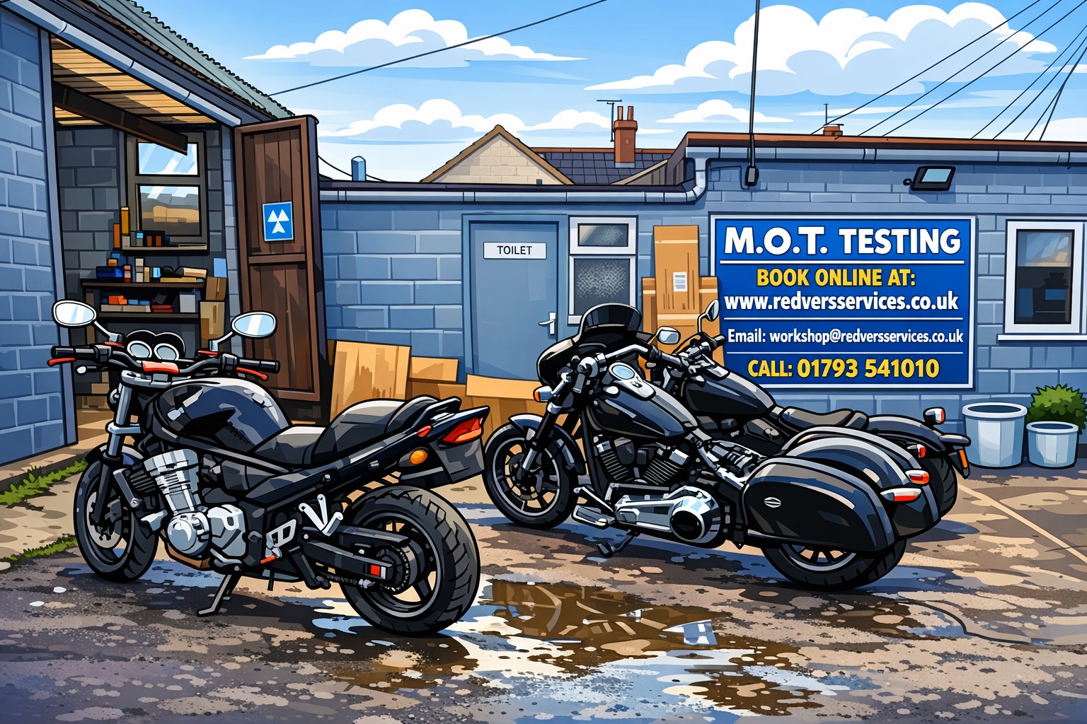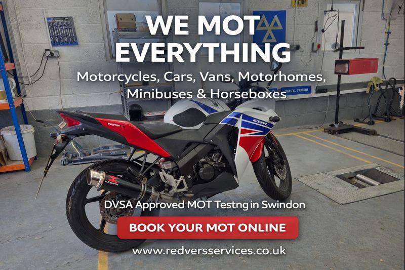 Motorcycle Mot Swindon test centre at Redvers Services offer Motorcycle MOT testing 5 days a week, onsite in our own fully equipped, VOSA approved computerised and automated Motorcycle MOT testing station in Swindon. All MOT tests are carried out by one of our fully qualified MOT testers. We can provide testing for nearly all makes and models of Class 1, 2, 3, 4, 5 & 7 vehicles, all 17 seat minibuses, Cars, Light Goods Vehicles, All European Motorhomes including Tag Axles Up to 5 ton, We operate MOT testing for all petrol, diesel, and catalyst cars.